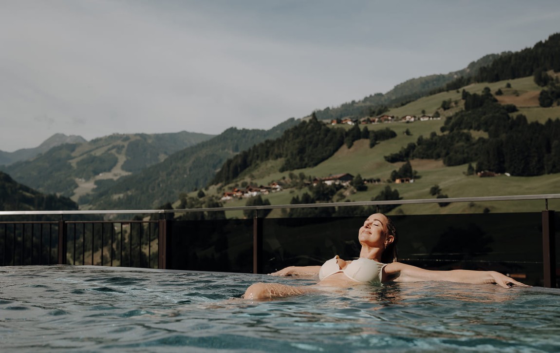 Für noch mehr Wellness-Feeling habt ihr im Sommer freien Zugang zum Infinity-Pool im Hotel Dorfer – ob zum Schwimmen, Sonnen oder einfach zum Loslassen.