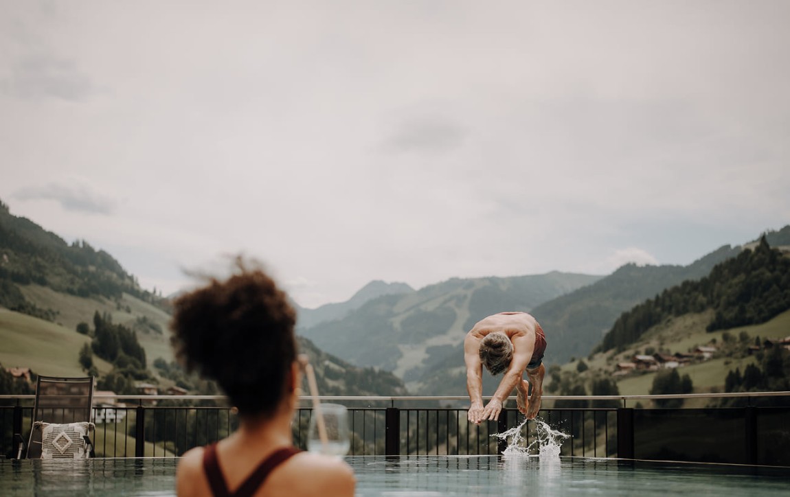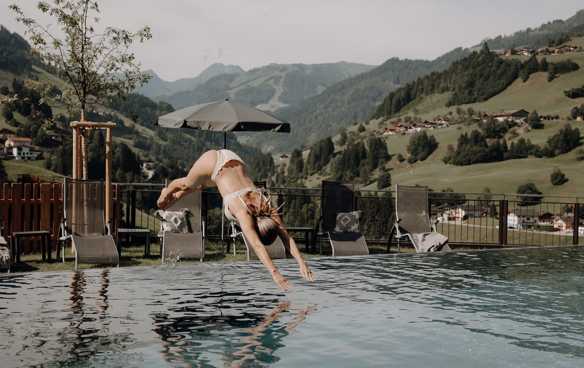 - Abtauchen im Infinitypool: Outdoorpool mit Liegewiese – exklusiv nutzbar für Chalet- & Hotelgäste (nur im Sommer)